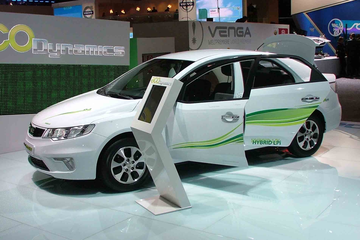 KIA präsentierte auf der IAA erstmals in Europa den Forte LPI Hybrid, der in Korea bereits zu kaufen ist. Er verfügt über einen 114 PS starken, mit Flüssiggas betriebenen 1,6-Liter-Motor, der mit einem 20 PS (15 kW) starken Elektromotor mit 105 Nm Drehmoment gekoppelt ist. Weitere Elemente des KIA-Hybrids sind eine 180-Volt-Lithium-Polymer-Batterie, ein stufenloses Automatikgetriebe (CVT), die Start-Stopp-Technologie ISG und ein System zur Bremsenergie-Rückgewinnung.