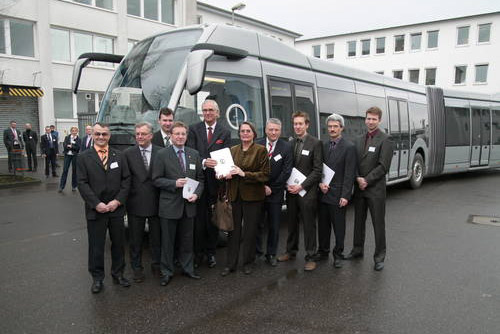 Nordrhein-Westfalen will gemeinsam mit den Niederlanden die Entwicklung eines 18 Meter langen Gelenkbusses mit Brennstoffzellen-Batterie-Hybridantrieb fördern. Das Land wird dafür 1,4 Mio. Euro aus dem NRW-EU Ziel 2-Programm bereitstellen. Das Projektvolumen beträgt auf nordrhein-westfälischer Seite rund 3,1 Mio. Euro. Wirtschaftsministerin Christa Thoben überreichte am 17.02.09 in Düsseldorf die Förderbescheide an die nordrhein-westfälischen Partner des grenzüberschreitenden Gemeinschaftsvorhabens. Insgesamt vier dieser Busse sollen nach einem Jahr Entwicklungszeit die neue Antriebstechnik probeweise im Linienverkehr im Raum Köln und in Amsterdam testen. Dank der Brennstoffzellen als Energiequelle, bei der nur Wasserdampf anstelle von Kohlendioxid entsteht, fahren die Stadtbusse schadstofffrei. Gleichzeitig sind sie besonders geräuscharm.